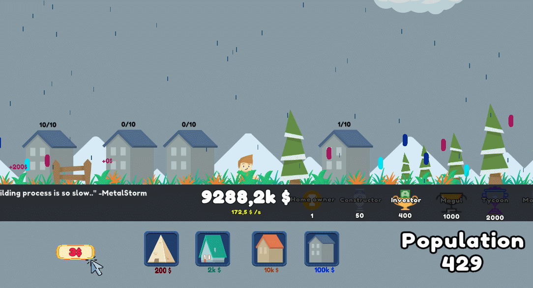 - March 29, 2020 by MounirDev2#unity, #city-builder, #2d, #building, #draganddrop, #new, #free, #minigameHello everyone, so I made this update for my game ( hopefully the last one), I added a cool character that you can use to navigate in the little world you have, added some music and of course.. TREES... Continue reading